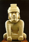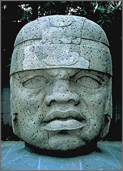 Les Olmèques constituent une énigme : on ignore jusqu'à leur nom véritable. Celui que nous connaissons leur a été donné par les Aztèques et signifie à peu près " hommes caoutchouc" ou "les gens originaires du pays du caoutchouc", vraisemblablement parce qu'ils ont inventé le jeu de pelote avec une balle de latex (jeu qui fut populaire dans toutes les tribus indiennes). |