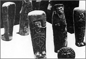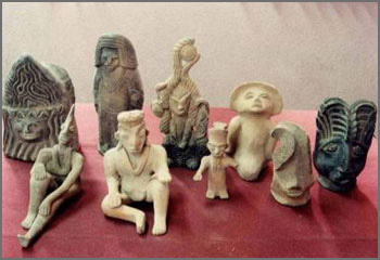 Ce sont plus de 33 500 (!!!) objets en céramique ( dans une très grosse majorité ), pierre, jade et obsidienne qui ont été retrouvés. Ils sont tous uniques, aucun n'est dupliqué. Ils sont de taille variable, de quelques centimètres à moins d'un mètre. Différents types d'argile ont été utilisés ( leur étude serait une précieuse indication de leur provenance ), mais tous ont été fabriqués par la méthode du "feu ouvert" ( la fabrication de faux ne serait donc pas passée inaperçue par la fumée dégagée et les grandes quantités de bois -rare et cher dans cette région- nécessaires ). En dépit de leur grande diversité, on peut les regrouper, par leur design, par centaines voire par milliers, comme issus de différentes cultures. |