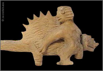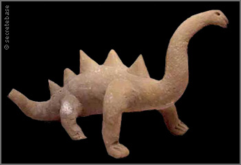Mais des hommes avec des dinosaures, c'est impossible ! Charles Hapgood, professeur d'histoire et d'anthropologie à l'Université du New Hampshire ( qui a aussi travaillé sur les cartes antiques ) a été sur place pour enquêter, rencontrer et interroger les protagonistes de cette histoire. De son voyage, il a ramené quelques échantillons afin de les analyser selon les méthodes les plus modernes de l'époque (fin des années 60). Les mesures ( au carbone 14 ) données en 1968 par le Laboratoire d'Isotopes Inc. du New Jersey s'échelonnent de 1 110 av. J.C. à 4 530 années av. J.C.! En 1972, les datations par thermoluminescence constatées par l'Université de Pennsylvanie sur 2 figurines furent de 2 500 ans av. J.C.! |