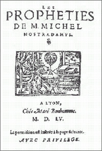 Michel de Nostredame, qu'on appellera Nostradamus, a sans conteste était le plus grand visionnaire du millénaire. Il s'inspira pour écrire ses centuries., de méthodes kabbalistique, d'astrologie, de tradition judaïque, des prophéties de Jean de Jérusalem, mais aussi de livres de magie et de prophéties grecques. Ses prédictions s'étendent de l'an 1555 à 3797 après J.C. ! Elles sont composés sous forme de centuries., elles-même composées de quatrains. |
